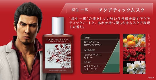 株式会社フィッツコーポレーション(本社:東京都港区、代表取締役:富樫康博)は、株式会社セガの人気ゲームシリーズ最新作『龍が如く 極3 / 龍が如く3外伝 Dark Ties』の発売を記念し、メインキャラクターである桐生一馬と峯義孝の生き様を香りとデザインで表現したコラボレーション香水を発売いたします。