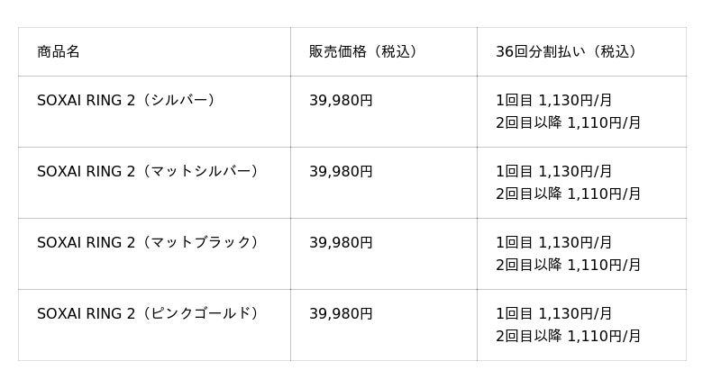 ※1 2026年3月24日(火)以降、「SOXAI RING 1.1」の取扱いは終了し、店頭でお客さまへお渡しするチラシに掲載されたQRコード(R)を読み込むことで、ドコモオンラインショップから「SOXAI RING 2」をご購入いただけるようになります。