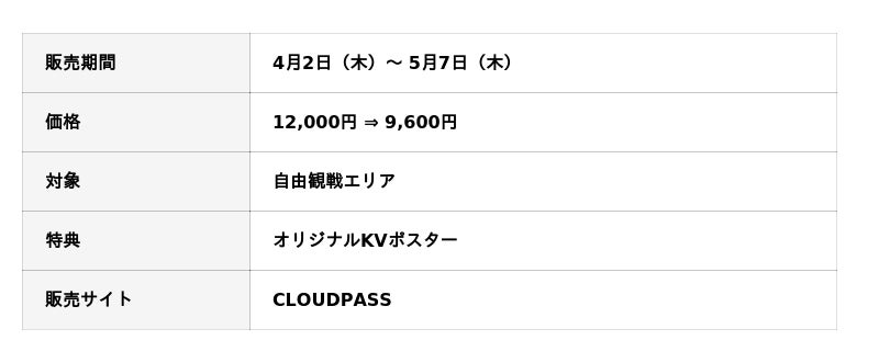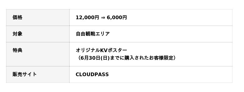 その他券種や詳細な販売スケジュールについては、下記チケットサイトをご確認ください。