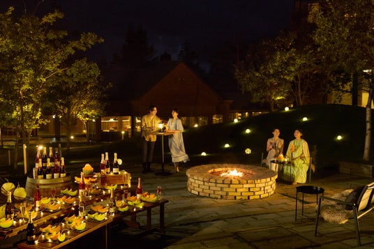 赤肉メロンの贅沢かき氷と2種類のメロンドリンクは、リゾナーレトマム宿泊者限定の屋外ラウンジで提供します。森を近くに感じ、広い空を仰ぐ開放的なこの場所では、焚火の灯りや水面のゆらめきが幻想的な空間を演出。旬のメロンを贅沢に味わいながら、爽やかな夏の空気に包まれ、優雅なひとときを過ごせます。