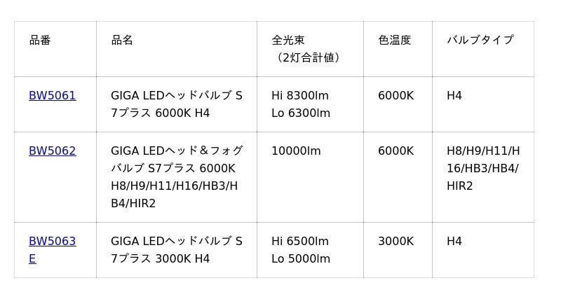 ・GIGA Webサイト・LEDヘッド&フォグバルブ ラインアップ