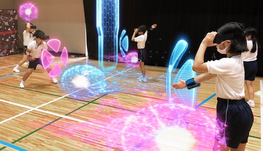 「HADO」は日本発のARアクティビティで、ルールはシンプルで分かりやすく、仲間と声を掛け合いながら楽しめるのが特長です。年齢・性別・運動経験を問わず参加しやすく、家族や友人同士でも気軽に体験できます。近年は教育現場や地域連携の取り組みにも活用が広がっており、四国中央市での活用事例では、運動能力に左右されない参加機会の創出、不登校傾向の改善、児童のコミュニケーション力や主体性の向上といった教育的成果が評価され、第8回日本ICT教育アワードにおいて総務大臣賞を受賞した取り組みの一部にもなっています。