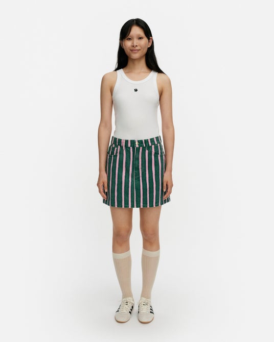 マリメッコは、独創的なプリントや色使いによって世界中に広く知られるフィンランドのデザインハウス。1951年、アルミ・ラティアにより創業。オリジナリティあふれるファッション、バッグ、小物からホームデコレーションまでを展開するライフスタイルブランドの先駆けとなる。マリメッコが創業当初から一貫して掲げてきたミッションは、時代に流されることのない機能的でわかりやすいデザイン。目にするだけで力が湧くような大胆なプリントと色使いで、毎日の暮らしに幸せと喜びをもたらすデザインを発信している。