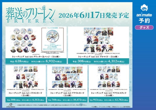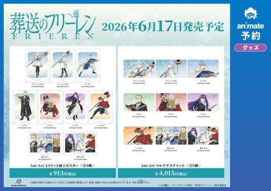 漫画・アニメのオリジナルグッズを販売する株式会社アルマビアンカ(本社:東京都中野区、代表取締役:坂井智成)は、この度、「TVアニメ『葬送のフリーレン』アニメイト先行予約キャンペーン」を実施いたします。