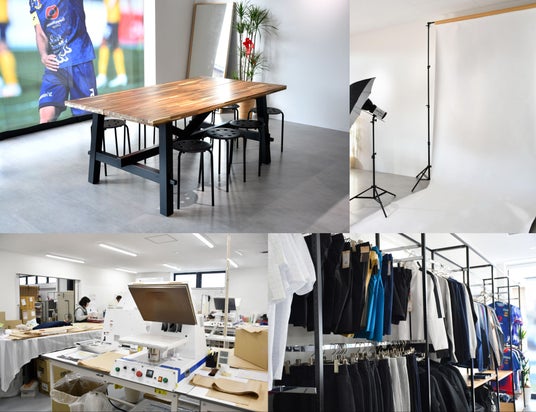 「KAIQUA」は、スクアドラが掲げる「開花・開化・改過」の3つの意味を込めたイノベーション施設です。内部には本格的な撮影スタジオや、ユニフォームのマーキング加工室が併設されており、今後は本拠点の強みを活かした、よりスピーディーでクリエイティブな商品展開をスクアドラと目指しています。