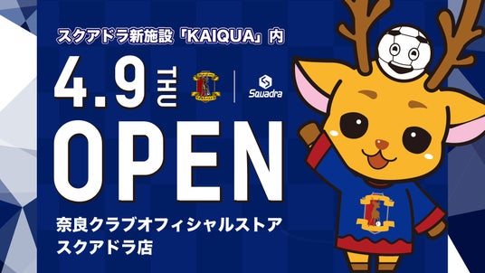 このたび、奈良クラブ(本社:奈良県奈良市、代表取締役:濱田満 以下、奈良クラブ)はオフィシャルサプライヤーである株式会社アクラム(本社:奈良県北葛城郡広陵町、代表取締役社長:勝谷仁彦)の新拠点「スクアドラパブリックイノベーションセンター KAIQUA(カイカ)」のオープンに合わせ、施設内に『奈良クラブオフィシャルストア(SQUADRA店)』を開設いたします。
