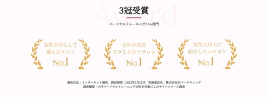 ※1:調査方法:インターネット調査(2023年1月12日)、実施委託先:株式会社JCマーケティング、調査概要:大手パーソナルトレーニング10社を対象にしたサイトイメージ調査
