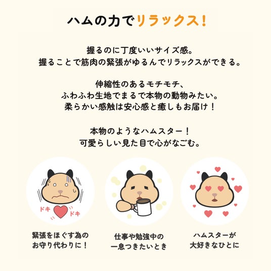 伸縮性のあるモチモチとふわふわ生地でまるで本物のハムスターみたい!