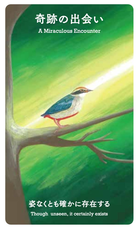 森・川・海がめぐる壮大ないのちの循環を感じさせる、36枚のカード「あめつちカード」の原画を展示します。ネイチャー活動家・船越友記郎が自然界から受け取った感覚やメッセージをもとに、画家・やまぢももかが描いた作品です。やわらかな光の表現や、独自に解釈されたまるで絵本のような物語世界、そして 緻密なディテールなど、原画から湧き上がるエネルギーを、ぜひご体感ください。