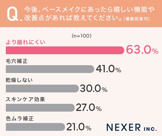 ■63.0%が今後のベースメイクに「より崩れにくい」機能を希望