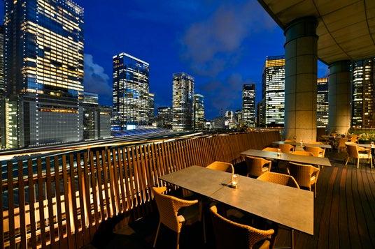 東京駅や高層ビル群の景色を一望できる屋外テラス