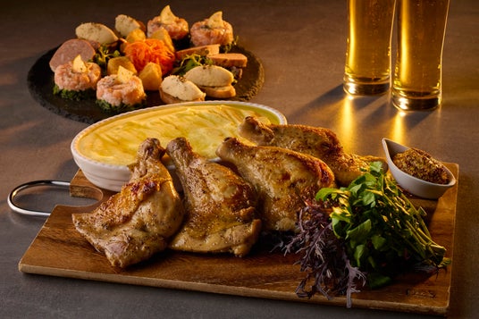チキンコンフィ ポム・ムースリーヌとムーダルト添え