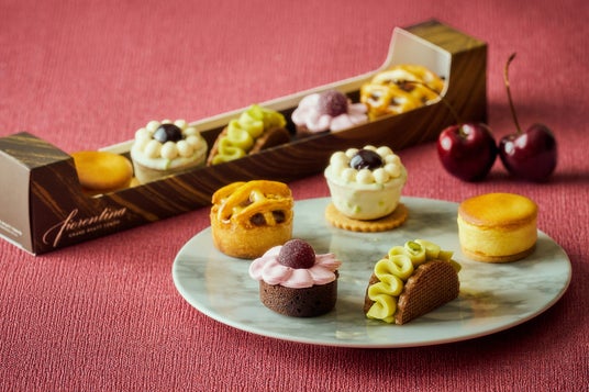 新作スイーツでは、チェリーの甘酸っぱさとクレームダンジュのミルキーな味わいが重なり合う「チェリー ベリーヌ」をはじめとした3種類を販売いたします。通常よりもさらに上質な食材を用いた“グランド プレミアム”シリーズでは、キルシュシロップを染み込ませたスポンジで、フレッシュチェリーのコンポートとクレームブリュレをサンドした「グランド プレミアム チェリーショートケーキ」が初めて登場いたします。そのほかにも、ローストしたアーモンドをまぶしたチョコレートのシュー生地に、グリオットチェリーのコンフィや軽やかなディプロマットクリーム、甘酸っぱいフレッシュチェリー、ほろ苦いチョコレートクリームをたっぷりと詰めたエクレアをご用意。さらに、艶やかな大粒チェリーが目を引くタルトなど、チェリーがもつ酸味と華やかな彩りをお楽しみいただけるスイーツがラインナップいたします。そして、ひと口サイズのスイーツをアソートにしたピッコロシリーズにも、チェリーをつかった2種類の新作が登場いたします。「チェリー ピッコロトルティ」には、香り豊かなピスタチオを練り込んだパウンド生地の上に、なめらかなバタークリームと艶やかなチェリーでつくるお花のモチーフをのせたケーキなど、6種類の焼き菓子を詰め合わせます。チョコレートでつくるチェリーのシルエットが愛らしい、グリオットチェリー入りのムースなど、6種類の生菓子アソート「チェリー ピッコロガット」も、手土産に最適な一品です。