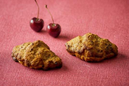 細かく刻んだドライチェリーを混ぜ込んだアーモンドクリームを重ね、バターの香りが豊かなクロワッサンに焼き上げます。生地にもドライチェリーを加えたほか、キルシュのシロップを染み込ませることで、チェリーの甘酸っぱさと、キルシュの香りをお楽しみいただけるよう工夫いたしました。