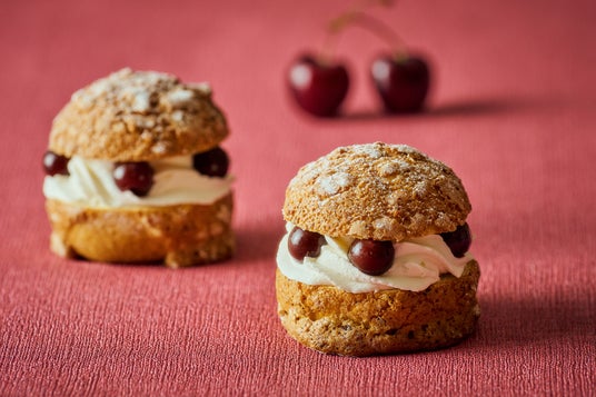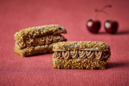絶妙な甘酸っぱさに仕上げた自家製のグリオットチェリージャム、チョコレートカスタードクリーム、フレッシュのアメリカンチェリー、ピスタチオクリームを、チョコレートでコーティングしたシュー生地でサンドします。みずみずしく甘美なチェリーや風味豊かなピスタチオと、シュー生地のサクっとした食感が織り成すハーモニーをお楽しみください。