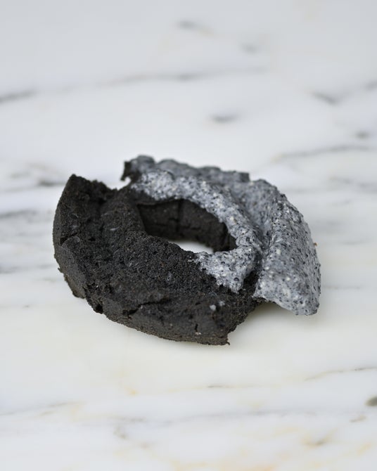□ オールドファッション胡麻 [揚げ]竹炭を練り込んだ生地に、胡麻ペーストのホワイトチョコをコーティング。香ばしいコクがしっかりと広がります。