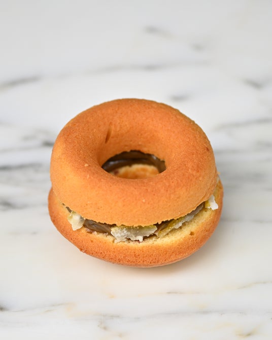 □ ほうじ茶サンド [焼き]しっとりと焼き上げた生地に、晩柑のやわらかな酸味を重ねました。ほうじ茶の香ばしさと柑橘の余韻が穏やかに広がり、軽やかな後味へとつながります。