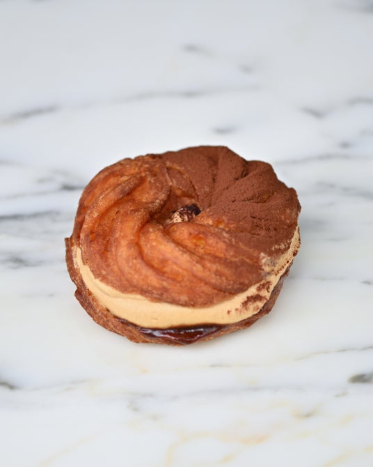 □ ティラミス [揚げ]フレンチクルーラー生地に、エスプレッソとチーズクリームをサンド。ほろ苦さとコク、ナッツの食感が重なる奥行きのある味わいです。