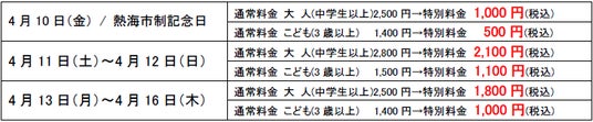 利用方法:ユネッサン4階総合フロントにて受付時、熱海市民であることを証明できるもの※