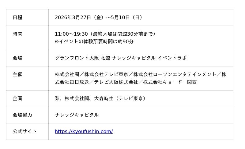 東京で13万人を動員し大きな話題を呼んだ新感覚の体験型展覧会「恐怖心展大阪」が、2026年3月27日(金)から5月10日(日)までナレッジキャピタル イベントラボにて開催されます。