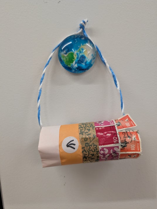 空き容器や紙コップ、使用済みの切手やマスキングテープを使ってこいのぼりを作ります。