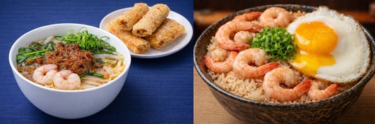 △左:台南セット台南担仔麺(タイナンタンツーミェン)&揚げ春巻き