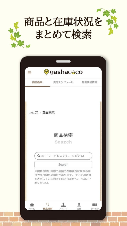 こうしたユーザーの不便を解消するため、「gashacoco公式アプリ」は、商品在庫検索機能(※)を搭載しています。
