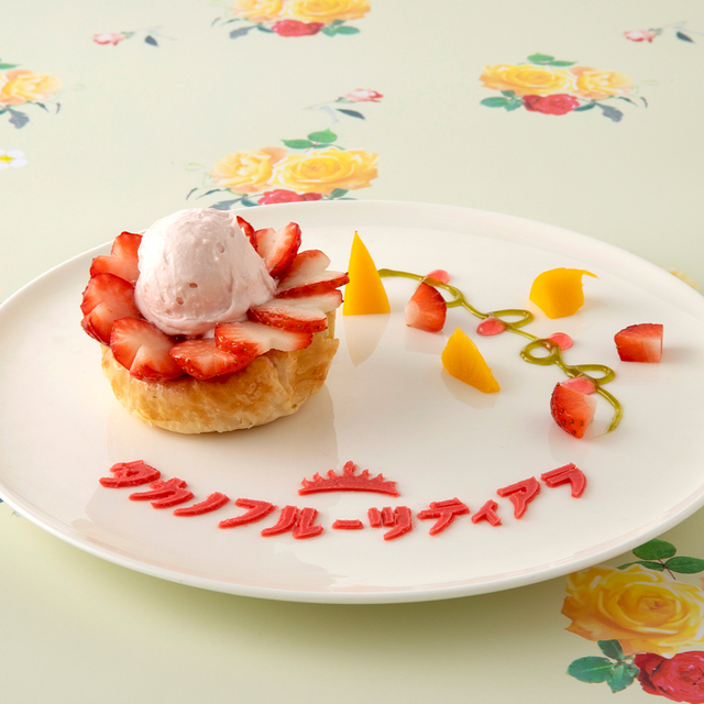 今回用意されるアフタヌーンティーは苺とマンゴーを中心に、花をモチーフにしたデザイン。