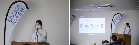 私はサービス(お魚アイデア部)とPRについての報告をさせていただきました。質疑応答の際にPRの活動でこんなことはしてはどうか?といくつもの提案をして下さり「これらは私たちだけでは見つけれない視点だ」と感じてありがたかったです。また、仲卸さんや市議会議員の方々、市場関係者の方々が私たちの活動は意義のあることだとおっしゃってくれたことは本当に嬉しかったです。私自身はPR担当でしたが、今年度はその枠組みを超え、サービスや商品開発の活動にも参加しました。その中で得た知見、そして一見「市場の学校」とは関係のないように思えることも、この期末発表会の場で多くの方と共有ができました。