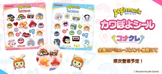 株式会社コナミアーケードゲームスは、アミューズメント景品「pop'n music カワぽよシール」が3月26日(木)から全国のアミューズメント施設に登場することをお知らせします。