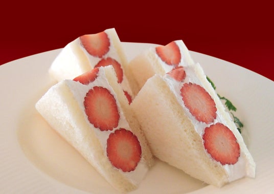 ふわっと軽い食パンで、苺と生クリームだけを挟んだ王道のフルーツサンド。シンプルな味わいが、苺の甘酸っぱさをいっそう引き立てます。