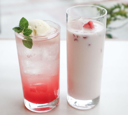 (左)いちごのクリームソーダ (右)いちごみるく