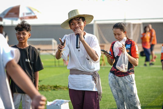 ファン参加型のクメール伝統ゲーム : カンボジア伝統の遊びをファン参加型で実施。子供から大人までが一緒になって笑い合い、世代、国籍を超え、笑顔が溢れる時間となりました。