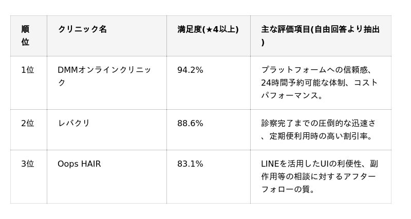 総じて、2026年の利用者は「治療がどれだけスマートに生活に組み込めるか」を最重要視しており、今後は医療品質に加えて、物流・IT・カスタマーサポートの総合力がクリニックの評価を分ける分水嶺になると推察されます。