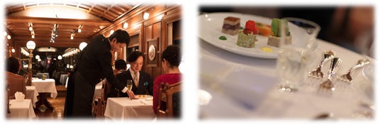 ・「「ななつ星」車内での食事は、九州各地の名店から新たな料理人が乗車しご提供。