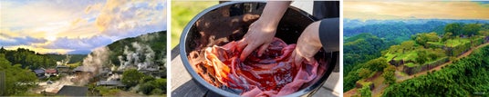 湯けむりの向こうに静かに息づく大地の鼓動。九州が抱く地熱の恵みに出逢う二日間の旅です。 九州屈指の人気路線、久大本線と豊肥本線を走り、流れゆく山並みを車窓に眺めながら向かうの は、噴気たなびく「わいた」の地。集落の至るところから温泉が湧き、自然の力とともに生きる 人々に出逢います。車内では、わいたの地熱で抽出した天然染料をつかう染物体験もお楽しみい ただけます。大分県竹田では、難攻不落といわれた岡城で栄えた岡藩の暮らしの訓え「冥加訓」 を紐解きます。その記述から復活させ、当時の人々の健康を支えたといわれる希少な「五斗味噌」 を使用した朝食もお楽しみください。