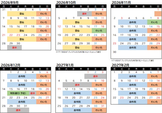 クルーズトレイン「ななつ星 in 九州」(以下「ななつ星」)は、2026 年3月よりコースを変更し、 新たな旅へご案内します。この度、新たに2コースを加えた秋冬の九州を走るコースにつきまして、 4月より受付を開始します。併せて、通常のコースとは異なる「プレミアムな九州の旅」も受け付け ます。九州の魅力をたくさん乗せた「ななつ星」が、新たな地域を巡る姿に是非ご期待ください。