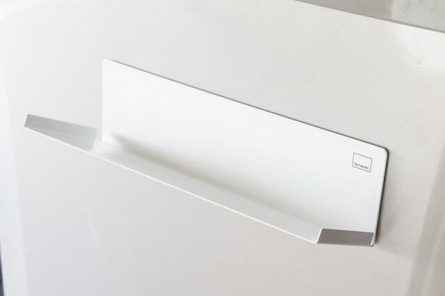 特徴は、裏面の大きなマグネット。これによって、冷蔵庫やキッチンパネルへ取り付けられるんです。