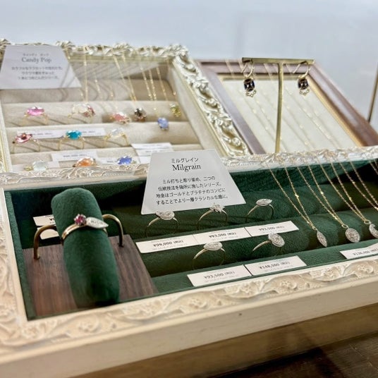 また会期中には、ご好評をいただいておりますジュエリーのカスタムオーダー(セミオーダー)も承ります。ルースや地金からお選びいただき、お客様それぞれのご希望に沿ったジュエリーをお仕立ていたします。スタッフとともに素材やデザインを選びながら、形になっていく過程をご体感いただけます。