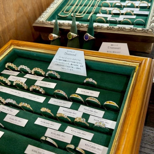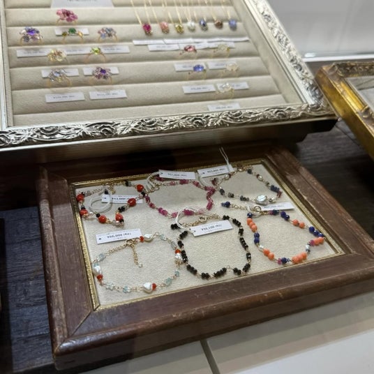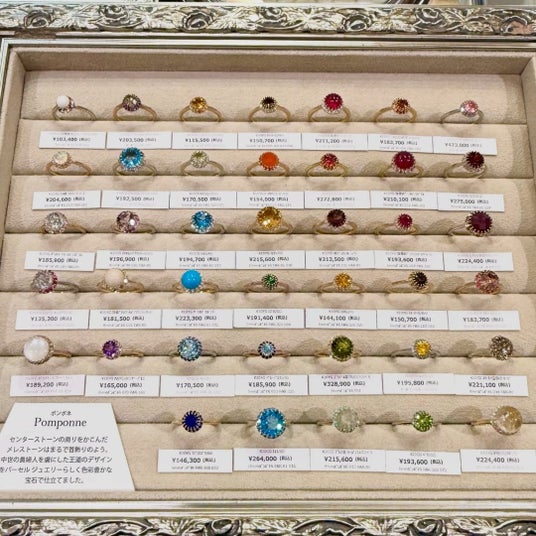 ポップアップショップで、限定ジュエリーと並んでご好評をいただいているのが、カスタムオーダー(セミオーダー)です。経験豊かなバイヤーが厳選した天然石コレクションからお好みの石を選び、日本の職人が一つひとつ手仕事でジュエリーに仕立てます。会場ならではのラインナップや、通常は目にする機会の少ない石も並びます。石を選び、デザインを決めていく過程を通して、1点もののジュエリーがかたちになっていく喜びを体感していただけます。