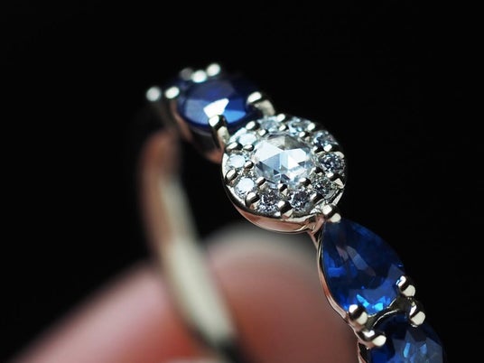 一方、スリランカ産ブルーサファイアは、高い透明度と光を含んだ発色が魅力。“セイロン・ブルー”と称されるその青は、軽やかさと凛とした気品を併せ持ちます。