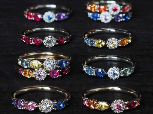 同じコランダムという鉱物であるからこそ、透明感や輝きの質が揃い、複数の色を並べても全体に統一感が生まれます。