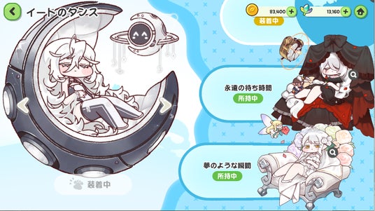 「回想シアター」が新たにオープン! 過去のテーマ劇場やミニイベントのストーリーが期間限定で復刻します。クリアして手に入れた「主演女優賞」は、「フィルム」と交換してあの名シーンをもう一度楽しんだり、「常設ロビー」を解放したりするのに使えます! 使徒の新私服も同時に登場!イード「永遠の待ち時間」「夢のような瞬間」、モモ「ヒップホップ満載忍法」、イフリート「ディープダークファンタジア」の4着の新私服が登場! 新しく生まれ変わった使徒たちに、ぜひ会いに来てくださいね~!