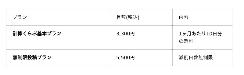 『計算くらぶ』の基本プランには、別途入会金3,300円(税込)が必要です。