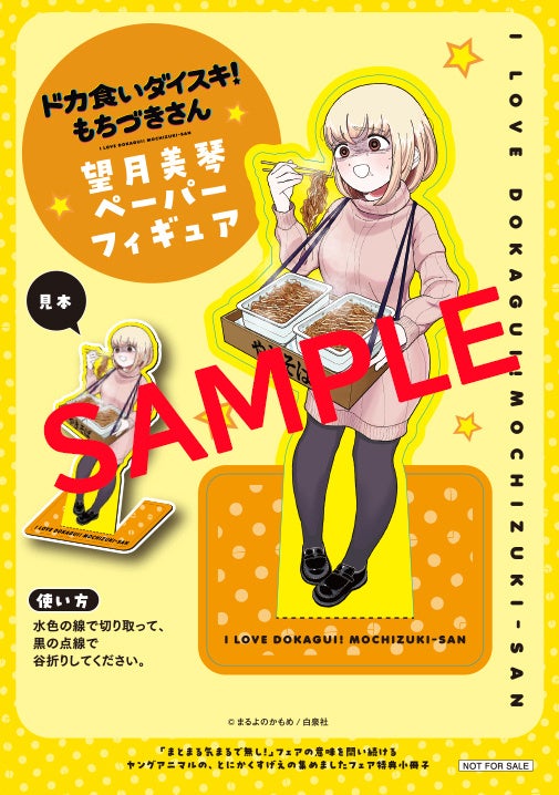対象作品を1冊かうと、特典小冊子1種がもらえます! 各作品の描きおろし1Pつき。裏表紙には「もちづきさんペーパーフィギュア」が作れるおまけつきです♪
