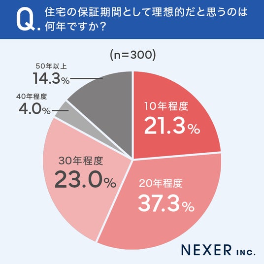 また「50年以上」と回答した人も14.3%おり、「40年程度」の4.0%を加えると、30年以上の長期保証を望む人は全体の約4割にのぼります。