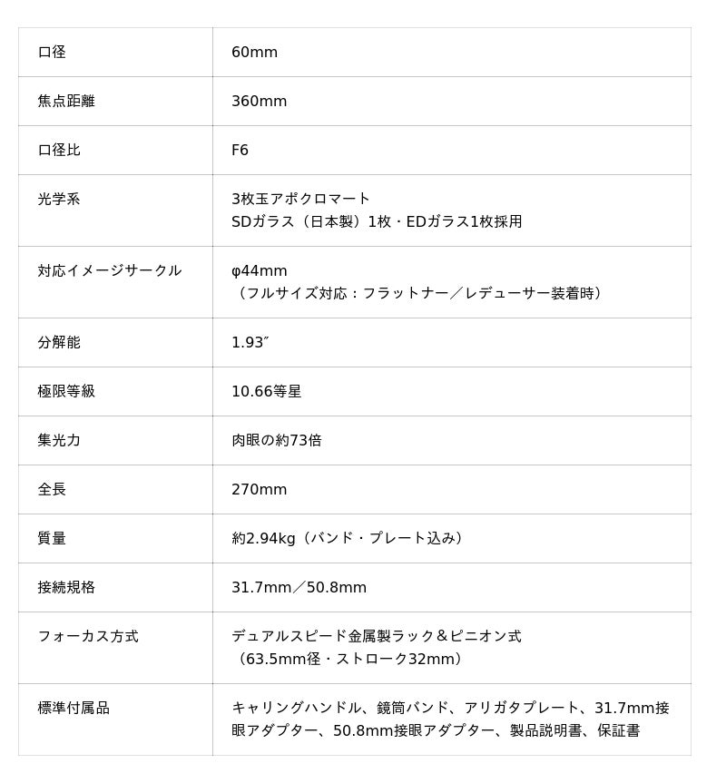 ※本製品は天体望遠鏡専門店およびサイトロンジャパン直営店のみでの取扱いとなります。