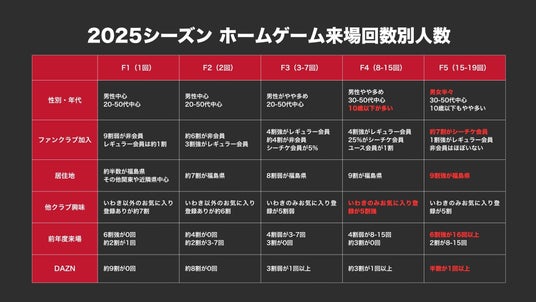 このたび、いわきFCは、現状のファンベースを把握し今後の効果的なマーケティング施策等を検討することを目的に、2025シーズンのホームゲーム来場データ(Jリーグマーケティングデータベース)の分析、および来場者へのインタビュー調査を実施しましたので報告いたします。