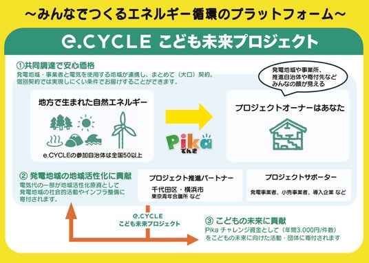こどもの未来を育む取り組みです。電気を切り替えるだけで、利用者はプロジェクトオーナーとして、こどもの未来につながるプロジェクトを応援できます。