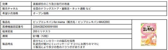 ママ向け磁気治療器「ピップエレキバン for mama」について